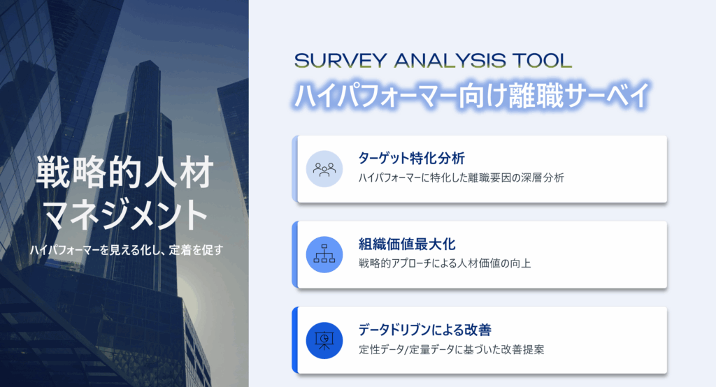 株式会社プロパース(本社:東京都新宿区、代表取締役:平山竜泰)は、HRコンサルティング事業においてハイパフォーマー(高業績人材)の離職防止を目的とした新サービス「離職防止サーベイ」をリリースしました。少子高齢化や採用難が深刻化する中、優秀人材の定着を支援し、企業の持続的な成長に貢献してまいります。